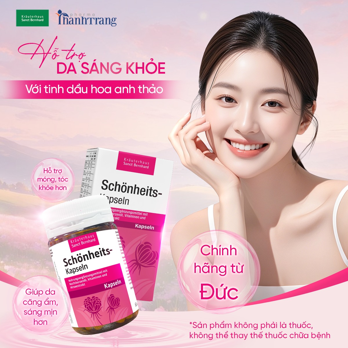 Tinh dầu hoa anh thảo Schönheits là viên uống hỗ trợ điều hòa nội tiết tố nữ, được nghiên cứu và sản xuất bởi Sanct Bernhard - thương hiệu chăm sóc sức khỏe lâu đời và uy tín đến từ Đức, chuyên phát triển các sản phẩm có nguồn gốc thiên nhiên, an toàn và đạt tiêu chuẩn chất lượng châu Âu.