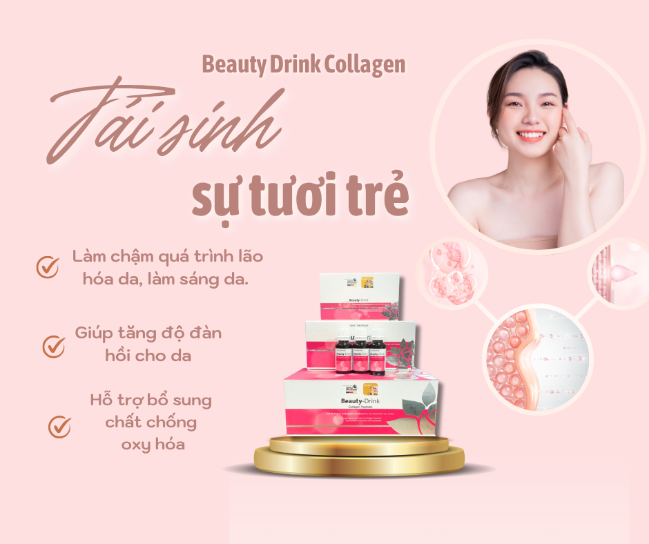 Và giải pháp dành cho bạn đó chính là Beauty Drink Collagen là sản phẩm collagen dạng nước cao cấp, kết hợp collagen peptide độ tinh khiết cao với vitamin C, biotin và các chất chống oxy hóa. Sản phẩm giúp cải thiện nhanh độ săn chắc và độ ẩm cho da, hỗ trợ tóc – móng chắc khỏe và mang đến vẻ ngoài tươi sáng, trẻ trung từ bên trong.