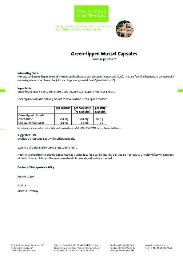 Green lipped Mussel là sản phẩm bổ khớp bổ khớp từ thịt vẹm xanh chất lượng cao đến từ thương hiệu Sanct Bernhard, một thương hiệu uy tín từ Đức với hơn 123 năm kinh nghiệm trong lĩnh vực chăm sóc sức khỏe. Sản phẩm được kết hợp đặc biệt để hỗ trợ giảm đau khớp, khô khớp.